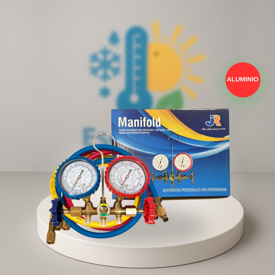 MANIFOLD R22 - R410 BRONCE C/PROTECTOR Y VISOR C/MANGUERAS